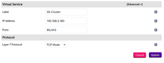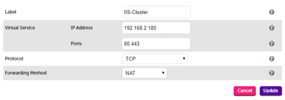 | HTTPS | 443 | All load balancing methods can be easily configured for SSL Pass-through.This has the advantage of being fast, secure and easy to maintain. Identical SSL certificates will need to exist on each of your backend servers for pass-through security.SSL Termination or off-loading must be used when advanced Layer 7 functionality such as cookies or URL switching is required. You can also implement SNI if you have multiple domain certificates one one public IP address. Optional re-encryption is also available between the load balancer and IIS. |